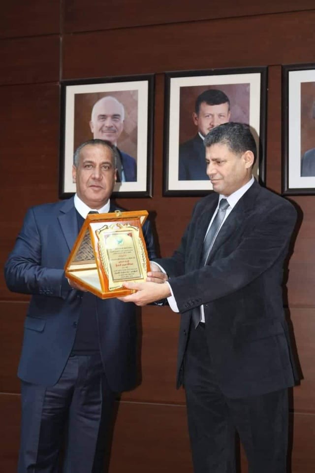 تم تكريم عطوفة رئيس جامعة البلقاء الاستاذ الدكتور عبدالله سرور الزعبي و عميد كلية عمان الجامعية الدكتور محمد اللحام و مساعد رئيس جامعة البلقاء التطبيقية للاتصال الخارجي الدكتور حسن العواملة بدروع التميز و الإبداع و الريادة لما يبذلوه من جهد لخدمة العلم وقام المهندس زياد العدوان بتقديم الدروع لهذه الشخصيات الاردنية صاحبة البصمة الإنسانية .